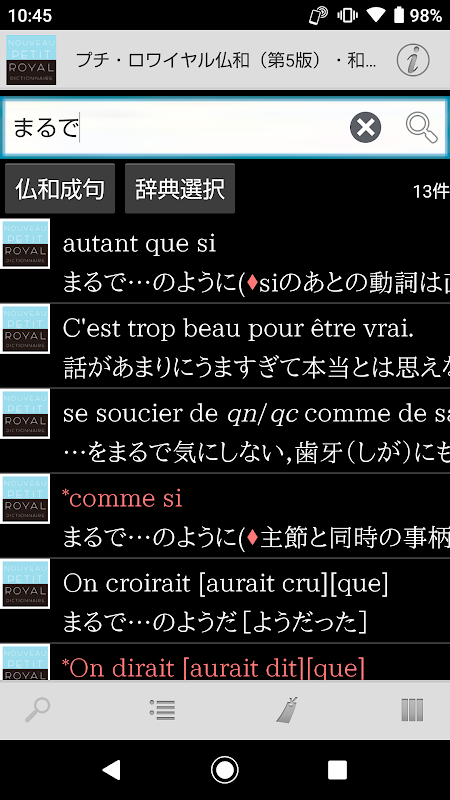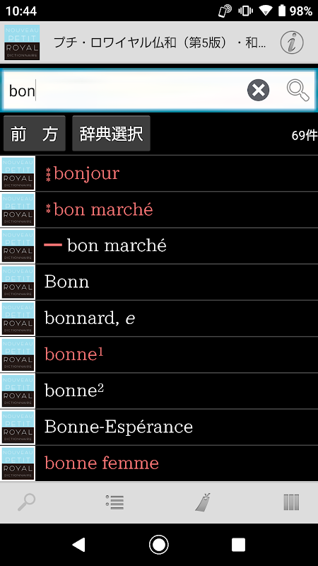 -Item Prancis-Jepang dan item Jepang-Prancis dicari bersama-sama, sehingga Anda dapat dengan cepat mencari dari bahasa Jepang dan Prancis.
