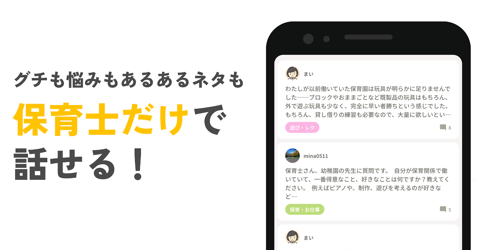 Hoiku Talk adalah aplikasi komunitas yang memungkinkan hanya guru pembibitan untuk membicarakan kekhawatiran mereka!
