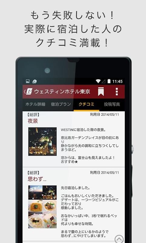 一番安いプランを探すのはもちろん、現在地付近の施設やトラベルjp独自の施設の評価点数から一番良い宿を探せます。また、ホテル・宿のクチコミ情報も搭載。豊富なクチコミや画像を参考に、ご希望にあったホテル・宿を探せます。