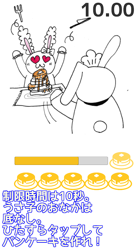 たくさんタップすればするほど、パンケーキをたくさん焼いて、うさ子に食べさせてあげることができます。