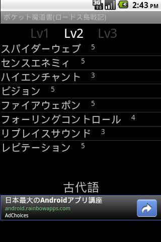 3.中段リスト部に表示される呪文をタッチすることで、該当呪文の詳細が表示されます。