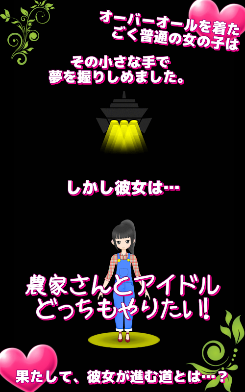 アイドルを目指している女の子、彼女の趣味は農場経営!アイドル育成ゲームとして、農場ゲームとして、のんびりと野菜を育てながら、目指せ美少女トップアイドル!