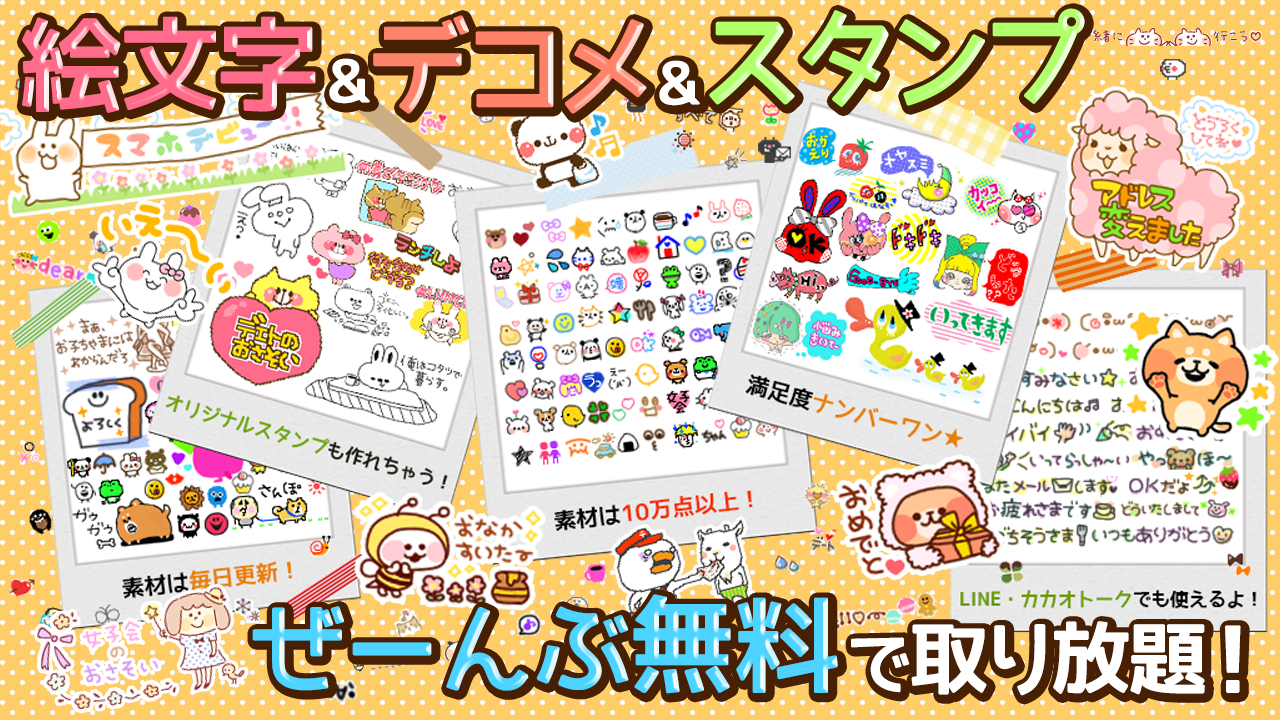 スマホでデコメ数No.1の無料絵文字アプリです。