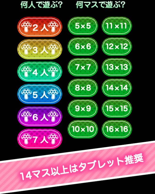 7. 14x14マス以上のプレイはタブレット推奨です。