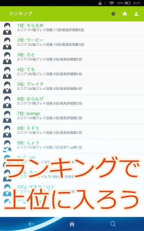 ランキング機能もあります♪一位を目指そう!