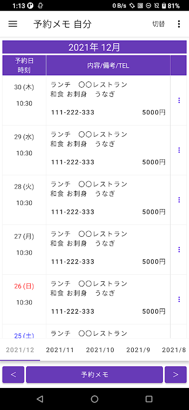 Versi lama 予約 予定 メモ 予約と予定を記録し管理するためのアプリ