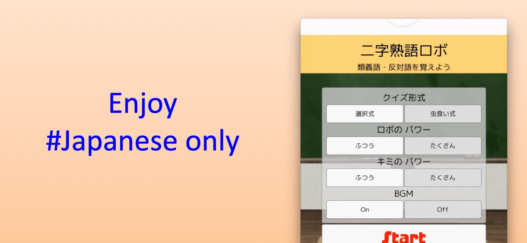 Aplikasi ini memiliki banyak sinonim dan antonim dari idiom dua kanji untuk pemula Jepang.