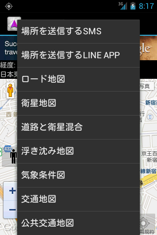 ネットが開いていときは、緯度と経度と住所をクリックして。APPはSMSで緯度と経度と住所を伝えることができます。