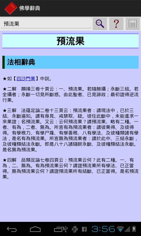 目前唯一可以離線使用的佛學辭典。 收入了《三藏法數》、《佛學常見辭彙》、《法相辭典》、《唯識名詞白話新解》四部辭典,約三萬個佛學詞彙。