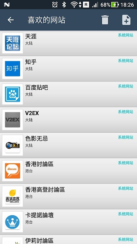 可以添加,删除自己喜欢的网站,目前系统包括以下世界知名中文论坛: