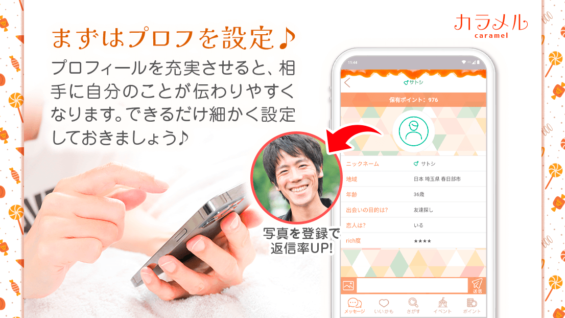 Caramel adalah aplikasi pencocokan kencan tempat Anda dapat bertemu teman secara gratis. Direkomendasikan untuk menemukan teman yang menarik di lingkungan Anda, seperti teman minum yang populer, teman hobi, teman hari jadi, dll., dengan percakapan aman bergaya SNS anonim!