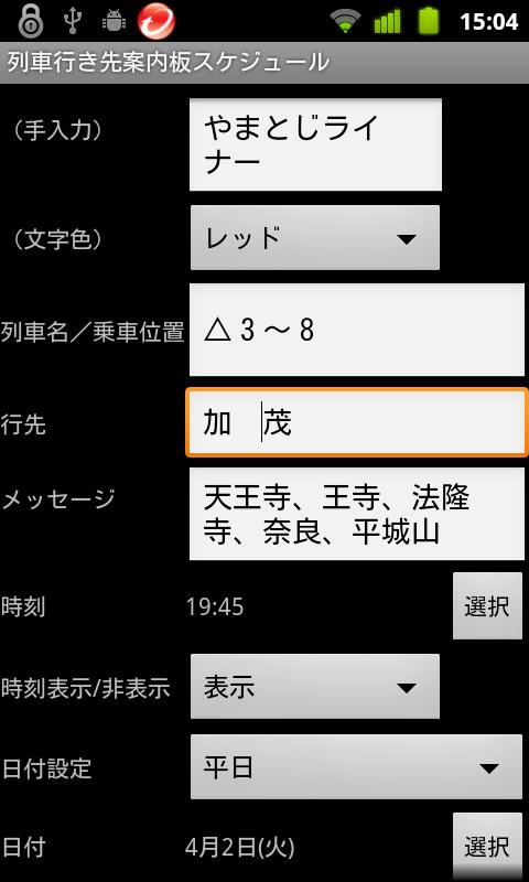 時間5分前になると、その列車の案内(設定されたメッセージ)が表示されます。