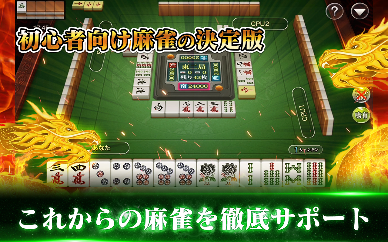 初心者の為の無料でずっと遊べて、点数計算もしてくれる人気麻雀アプリ。