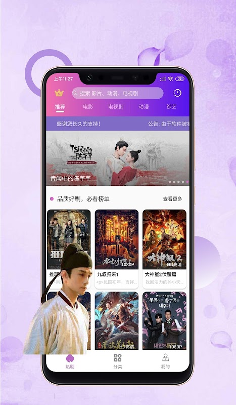 功能齐全:播放器切换,简繁切换,自动横屏,移动网自动播放,支持下载离线看