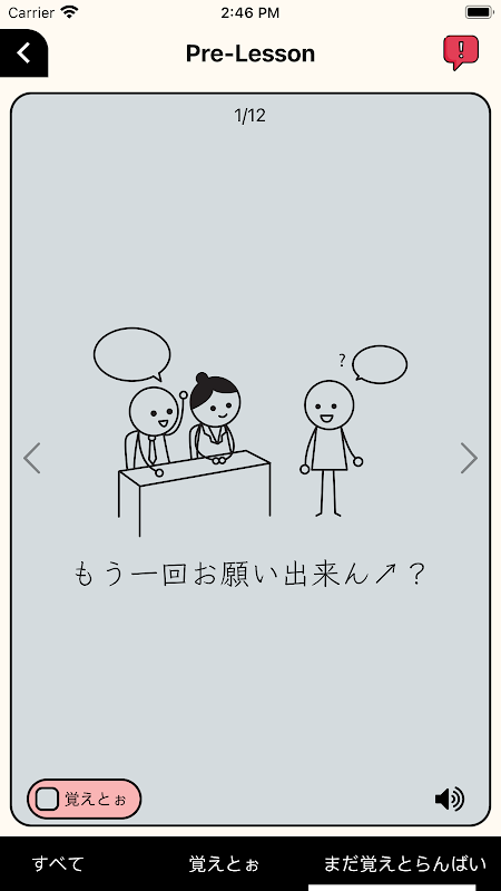 2. Flashcards: Dialek Hakata ditampilkan di bagian depan dan bahasa standar (bahasa asing) ditampilkan di bagian belakang sehingga Anda hanya dapat berlatih ekspresi yang tidak Anda ingat.