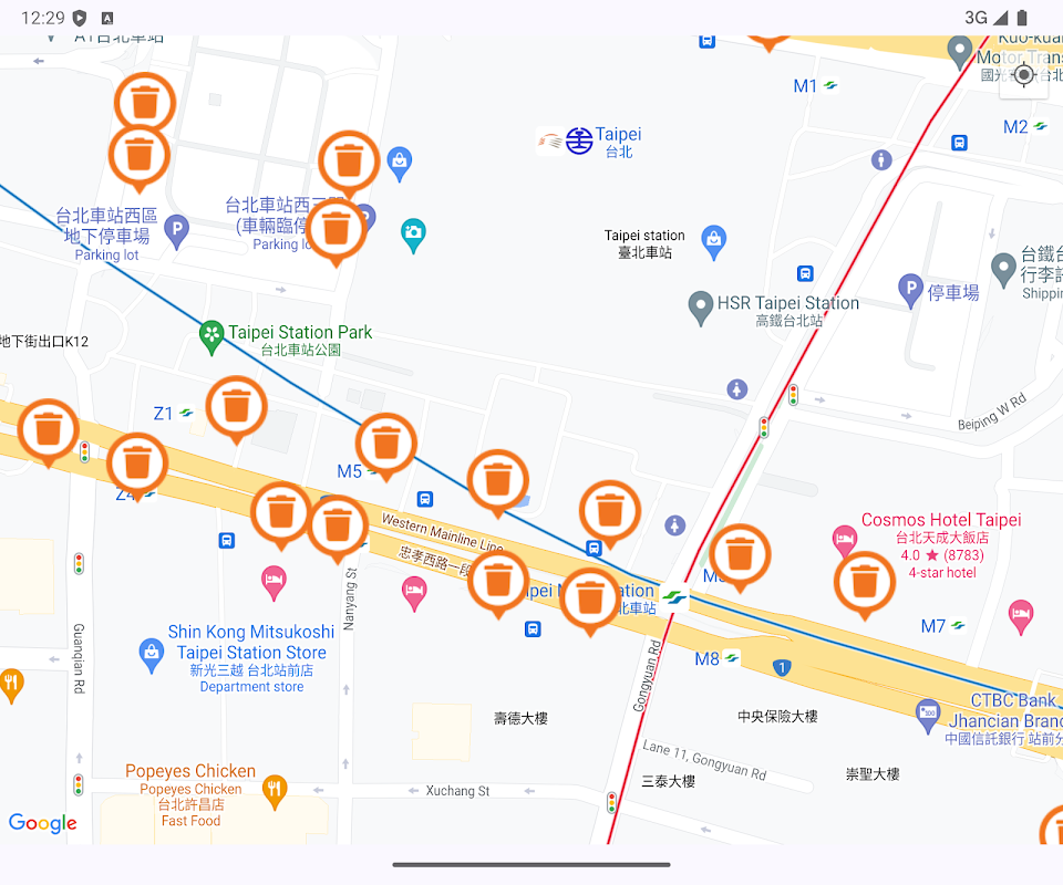 Temukan tempat sampah pejalan kaki di Kota Taipei