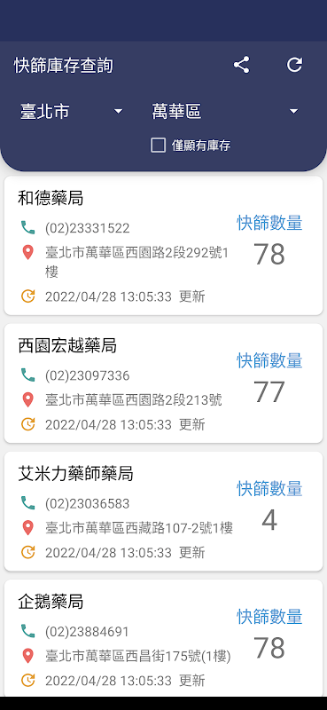 台灣快篩庫存查詢 - 快篩實名制、藥局查詢、即時庫存 1.2.0