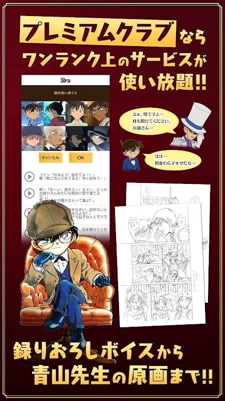 Terbatas pada aplikasinya, Anda bisa menerima wallpaper gratis karakter Conan yang digambar oleh Tuan Aoyama.