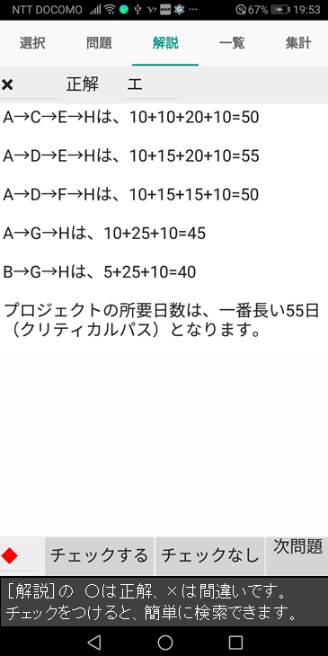 5.[一覧]は、チェックをつけた問題がわかるようにしました。