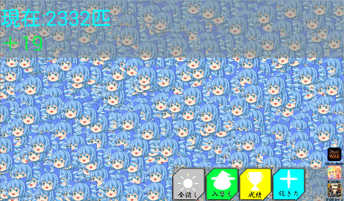 成績ボタンで最高到達数と一度のタッチで増やした数を確認できます。