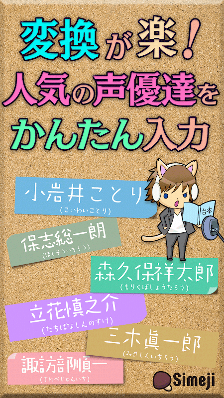 Simejiからいつでも人気声優の名前がサクサク変換できるようになります!