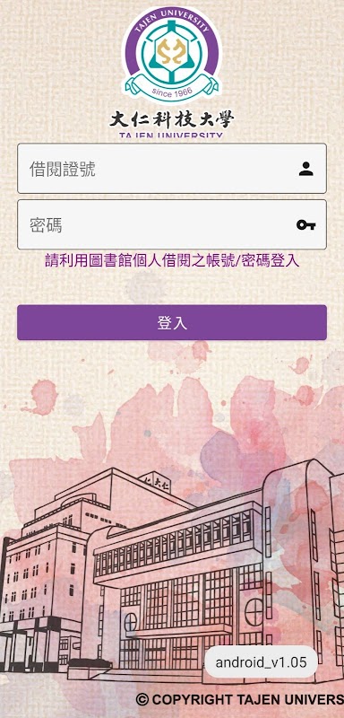 APKPure menggunakan verifikasi tanda tangan untuk memastikan unduhan APK 大仁科技大學圖書館 - 行動自助借書系統 yang bebas dari virus untuk Anda.