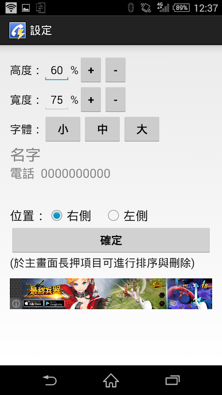 Atur dengan bebas ukuran area panggilan dan letakkan di pojok kanan bawah atau pojok kiri bawah layar