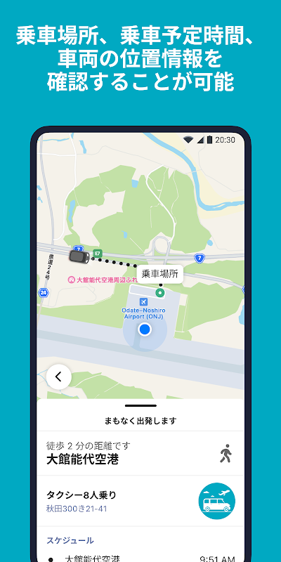 Sistem door-to-door (Anda dapat menentukan lokasi naik dan turun hanya dalam area layanan dan Bandara Odate-Noshiro)