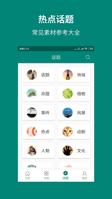 2.提供写人、叙事、书信、诗歌、议论、写景…等45种主题类别的好作文,并可以根据你的年级筛选。