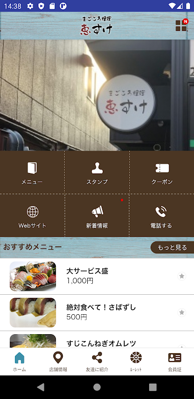 Melalui aplikasi, Anda dapat menerima informasi dan penawaran baru secara real time di Seafood Izakaya Tenmagokoro Food Riesuke.