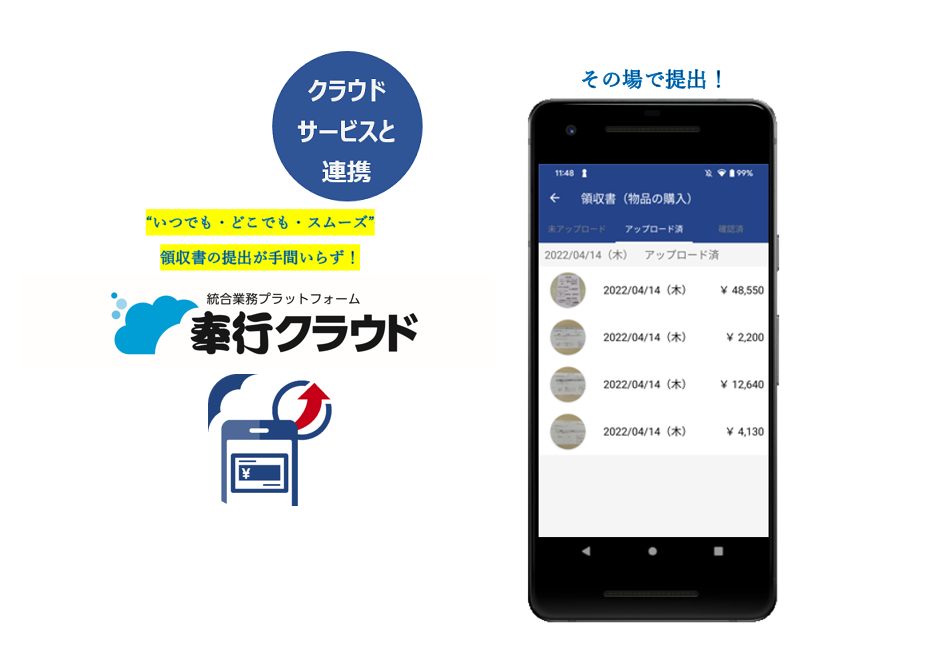 Anda dapat mengambil tanda terima atau tanda terima dengan ponsel cerdas Anda dan mengirimkannya sebagai data gambar dari aplikasi ini. Anda dapat dengan mudah mengirimkan tanda terima kapan saja di mana saja.
