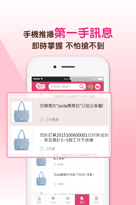 有好東西卻沒時間上來找嗎? 手機通知第一手訊息,即時掌握 讓您不再錯過喜歡的好康,開心買!