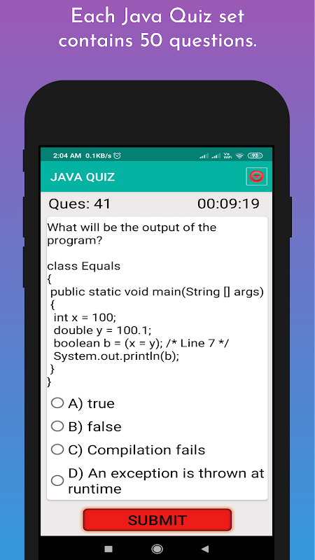 Selain itu, aplikasi ini memiliki antarmuka pengguna yang sangat sederhana dan isi dapat dengan mudah dipahami oleh pengguna. Pengguna tidak perlu koneksi internet untuk / nya perangkat sementara berlatih kuis Java secara online dan juga untuk belajar tutorial Java dan program. Aplikasi ini tersedia secara gratis untuk men-download dan update.