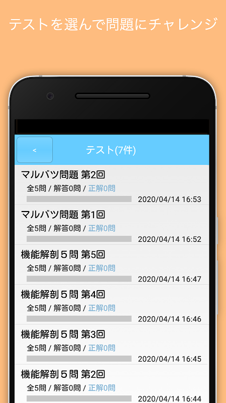 有限会社ラウンドフラットが提供するスマホラーニングシステム「宅ドリル便 システム」から定期的に配信される、健康運動実践指導者認定試験対策問題の小テストを行うためのアプリです。問題を解き終えた小テストは、後から復習もできます。