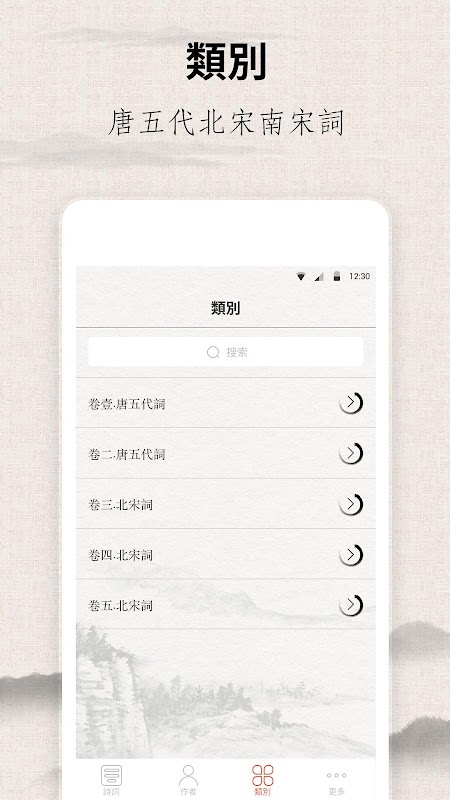 4 Dukungan fungsi pencarian kata Lagu, tidak peduli pencarian penulis atau nama puisi, Anda dapat mencari secara akurat