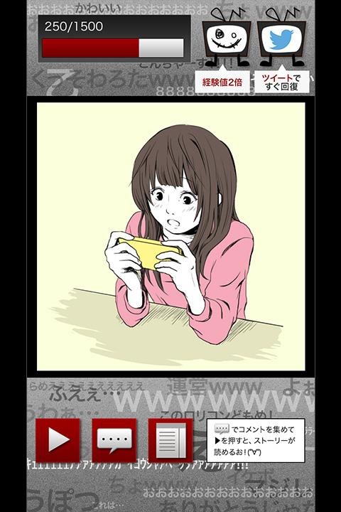 TOPに戻り、「再生」アイコンを押すと経験値が貯まり、物語が進みます。