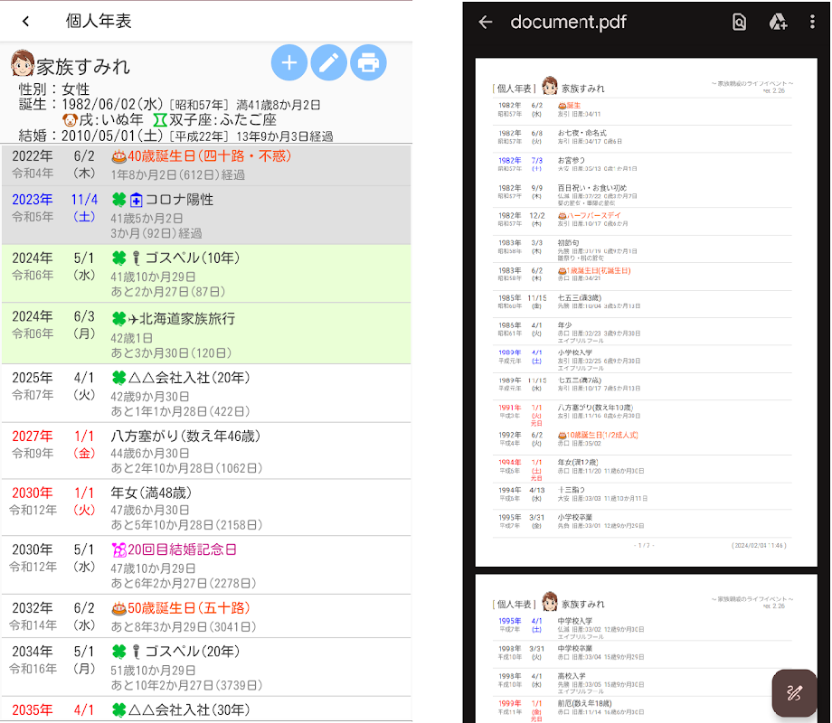 🍀Daftar acara tahunan dan kronologi pribadi kini dapat dicetak sebagai PDF