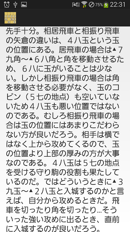 Salah satu Senkei dari Shogi, adalah sebuah aplikasi yang merangkum buku pembukaan benteng fase ayunan.