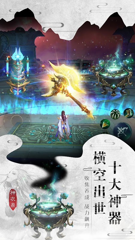 五大经典角色职业,9种技能随心切换,每个职业均拥有弑神必杀技,玩家可通过技能多样化组合,将弑神招式发挥至最大效果,体验满屏厮杀的快感。玩家还可通过强化、升星和洗炼和重铸,打造出个人专属顶级装备,此外,更有十大神器横空出世,从女娲石到神农鼎,直至盘古斧和轩辕剑,深度养成绝世神兵利器。