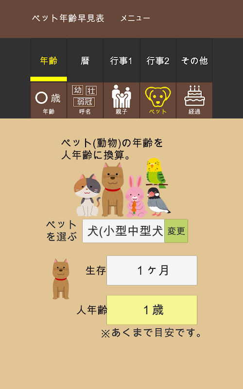 Informasi APK 年齢早見表/犬猫年齢、西暦、入学卒業、結婚、子供、長寿、恵方