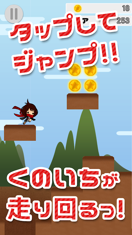 崖や罠をタップジャンプで超え、コインを獲得してハイスコアを狙うゲームです!