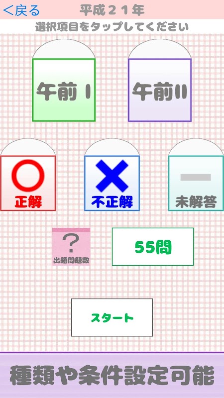 ・「全問題モード」「一問一答モード」の選択可能