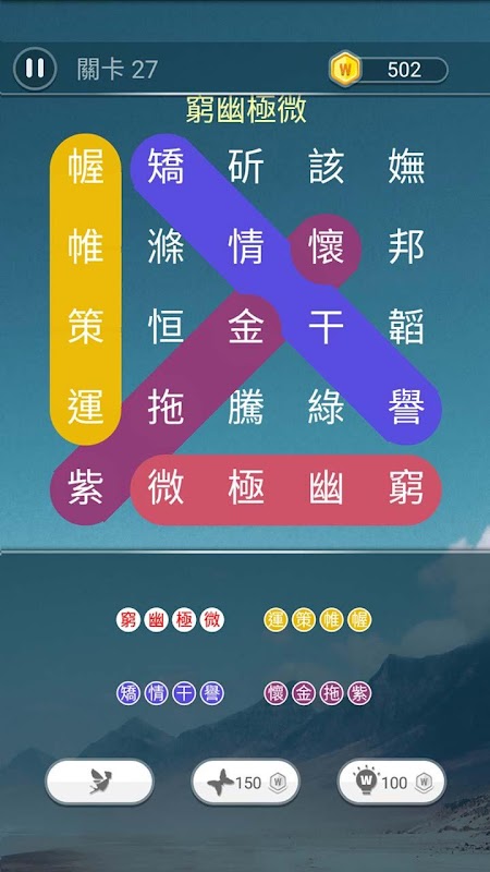 -節奏明快,每關只要找出目標數量的成語就可以過關