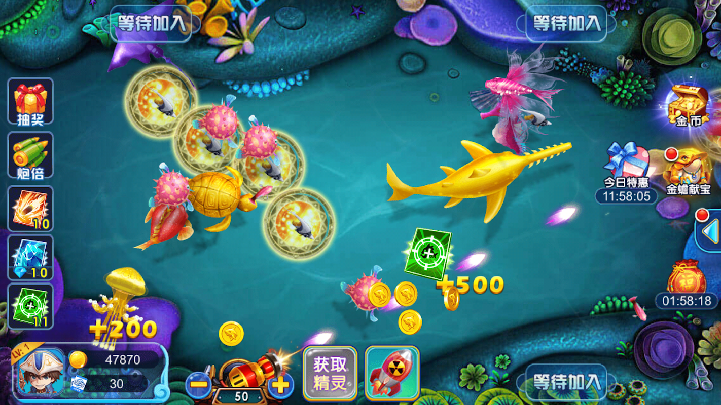 用超強千倍炮對抗神秘的海底BOSS,獨創技能狂暴分身轟翻全場,無論何種BOSS都壹網打盡,稱霸深海!