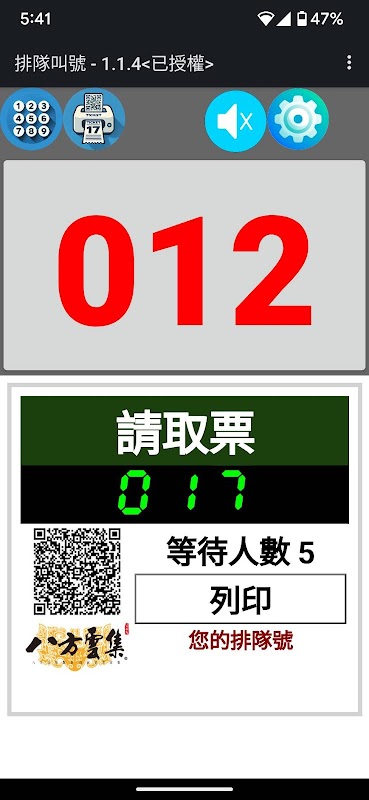 Metode penggunaan: 1. Daftar di toko dan dapatkan otorisasi 2. Toko menghasilkan [mesin tiket] dan [tanda panggilan nomor] Aplikasi Kode QR. Membaca kode QR ini dapat digunakan sebagai: (1) Mesin khusus untuk mengambil tiket (2) Mesin khusus untuk tanda nomor panggilan 3. Klik tombol [Ambil Nomor] untuk menampilkan [mesin tiket].