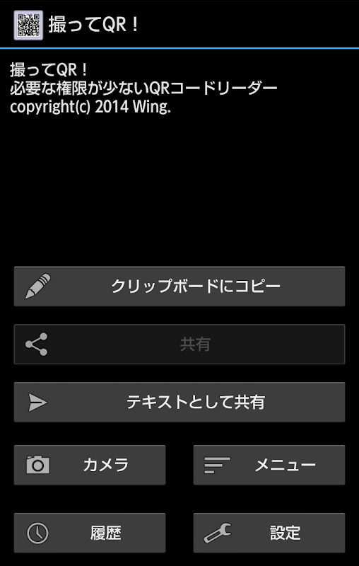 このアプリではカメラを使ったQRコードの読み取りに使用します。