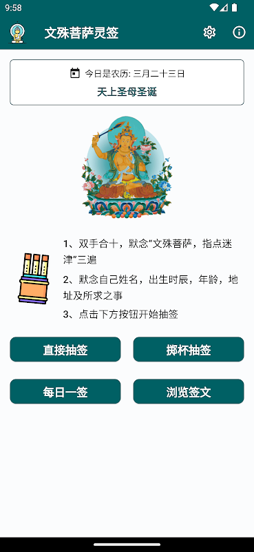 文殊菩萨灵签:抽签解签,每日一签,签文浏览,无需网络 2.1.0