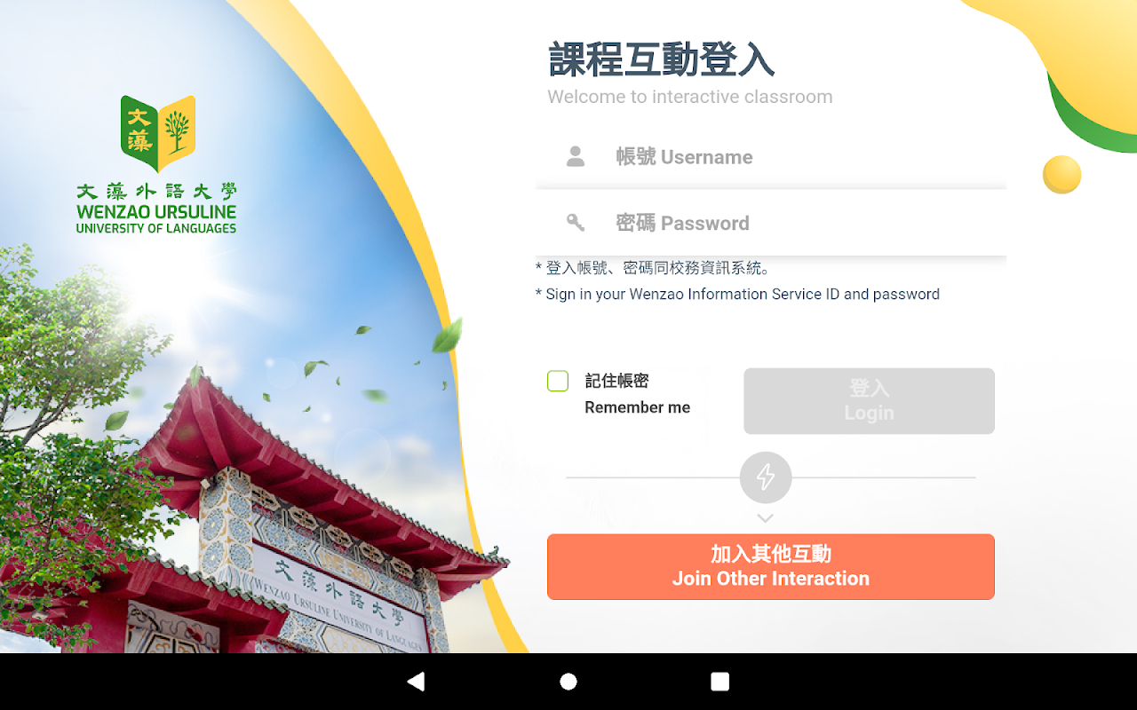 Wenzao Love Interactive adalah seperangkat sistem umpan balik interaktif waktu nyata di kelas. Guru dapat menggunakan sistem ini untuk menyiapkan pertanyaan sebelum kelas dan mengajukan pertanyaan di kelas. Ini membantu guru mengumpulkan jawaban dan umpan balik siswa dengan cepat, dan menciptakan menarik pengalaman kelas untuk guru dan siswa Mengajar situasi interaktif.