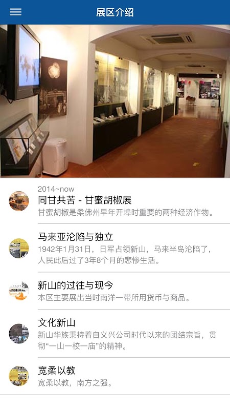 在参观过程中可藉由此程式的各种功能更加认识新山华人历史以及观赏馆藏的各件文物与图像,以达到更佳的参访体验。