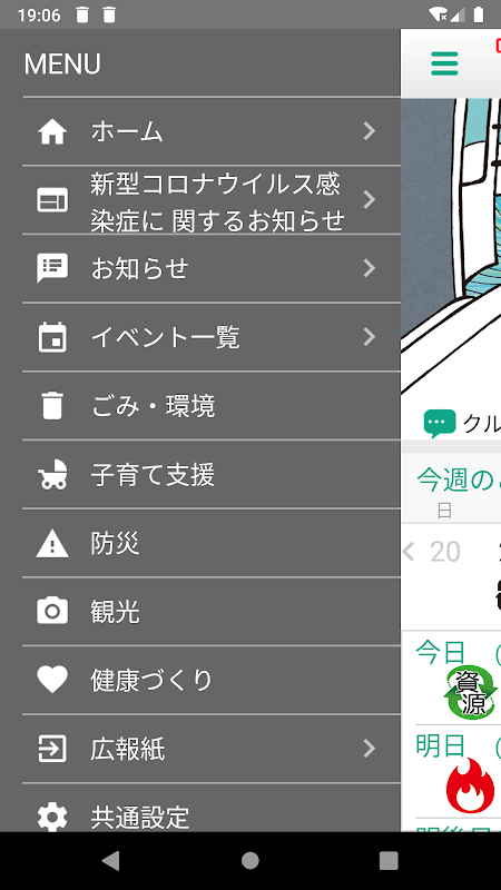 Anda dapat dengan mudah memeriksa informasi yang diperlukan untuk kehidupan sehari-hari seperti sistem pendukung pengasuhan anak, peta tempat tinggal, peta bahaya, kertas hubungan masyarakat.
